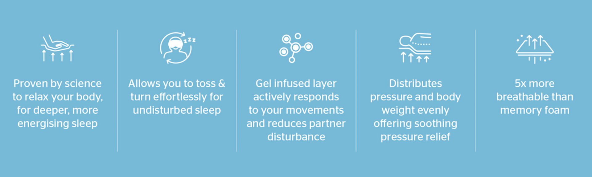 Enjoy the responsive bounce of our intelligent gel infused comfort layer, combined with breathable foam for a surface that's designed to adapt to your movements during sleep and enhance air circulation.