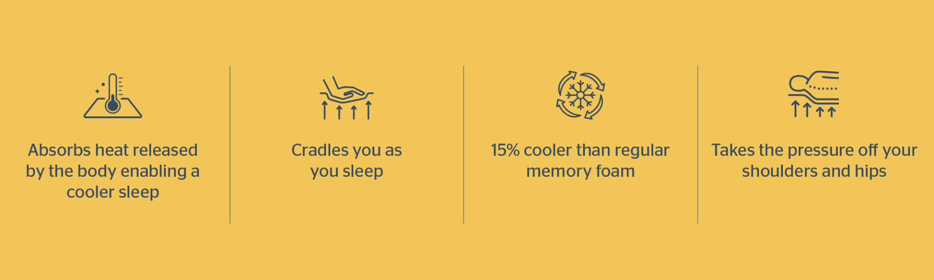Infused with graphite particles, the advanced Memory Cool™ foam absorbs and dissipates excess body heat, creating a sleep environment up to 15% cooler than standard memory foam for a more restful night’s sleep.
